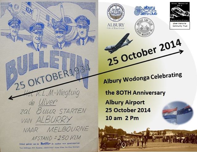 Uiver_3Today, Friday 24th October 2014 marks the 80th Anniversary of the Uiver landing at Albury when