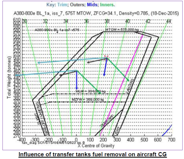 A380 Fuel CG vectors for the 11 tanks
